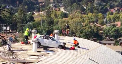 玩命關頭是真的?高速過彎「飛出山路25公尺」 降落「體育館屋頂」