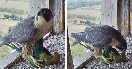 影/遊隼「大口進食綠鸚鵡」恐怖過程曝!網嚇哭:不敢看完