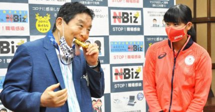 影/市長接見選手「嗨咬金牌」 東奧:不能換