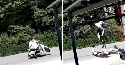 騎士中途突然翹孤輪 機車恐怖「懸掛空中」
