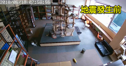 影/日本貓Cafe「遇上地震」監視器影片曝光 紀錄喵星人的真實反應