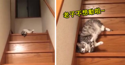果然是液體做的?貓咪不想動「流」下樓梯 直接懶出新境界!