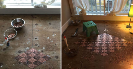 女子靈機一觸用13000枚硬幣打造「超華麗皇室風圖案」DIY地板!