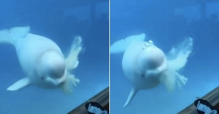 影/小白鯨玻璃前「吐泡泡」遊客哈哈大笑 專家卻揭絕非賣萌:是求救