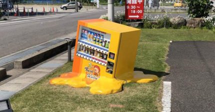 因為天氣太熱了?連自動販賣機也HOLD不住直接「融化」啦~