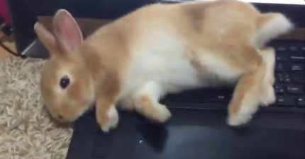 主人只顧著打電動!兔兔氣到翻肚肚「佔領鍵盤」!