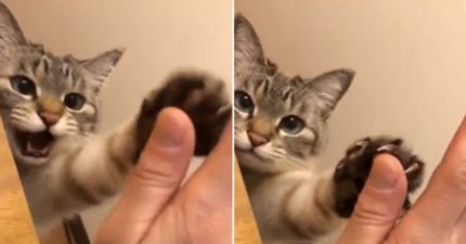 喵星人想吃罐罐 伸出肉球跟僕人「擊掌」萌叫:餓了~