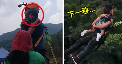爸爸「徒手抱幼女」玩60公尺高空彈跳,「女兒嚇到閉眼+一臉想哭」但他:不是我決定的(影片)