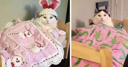 流浪貓咪被救回後每晚只會在自己床上睡覺,「緊抱娃娃可愛睡姿」萌瘋13萬人!