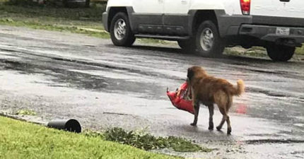 颶風來襲要自保!聰明狗狗「自帶一整袋狗糧」淡定逃生網友推爆!