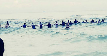 人類最美畫面!9人被困離岸流快支持不住,80人築起人鏈拯救他們!