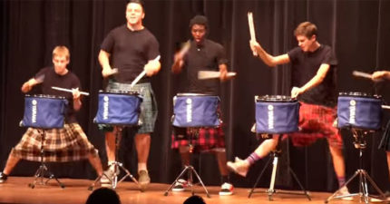 影/穿裙子打鼓!5个男高中生打到最后「直接把裙子掀起来」全场女生失控啦~