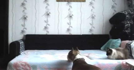 狗狗不被允許到床上玩 結果主人一出門…畫面太好笑!