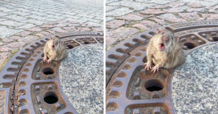 救救我!小胖鼠卡在人孔蓋 消防出動「9位壯男」全力救援