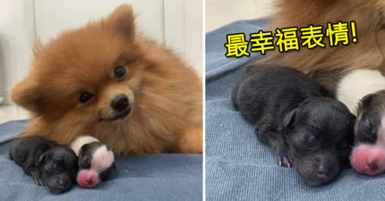 博美妈妈生小孩后本来很累 但牠一看到镜头竟露出「史上最幸福的表情」直接融化全网!