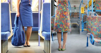德國超狂藝術家把「公車座椅布變衣服」 一上車直接融入背景裡