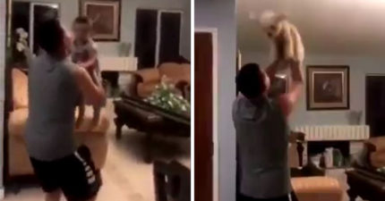 把拔抱兒子飛高高 一放下立馬「呆汪高舉小肥手」:換我啦~~~