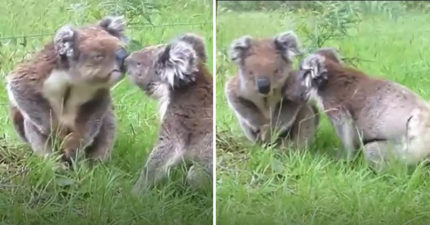 超萌無尾熊吵架「邊親邊打巴掌」 謎之叫聲神還原尖叫雞:啊~~~