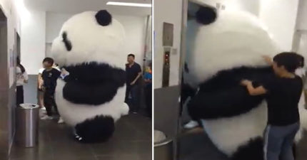 超萌大貓熊等電梯!肖想「全身進入塞好塞滿」 下場就是玩偶界最糗卻超療癒♡