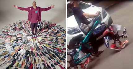 當你有很多鞋子想炫耀 但只有兩隻腳的時候…奇葩「鞋子腳踏車」上路啦!