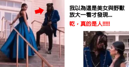 爆紅《美女與野獸》Cos婚紗照 網近看發現「怪怪的」:他沒戴頭套!