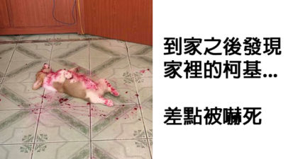 他到家發現柯基「倒臥紅泊」崩潰嚇哭 下秒發現「凶器」秒笑翻!