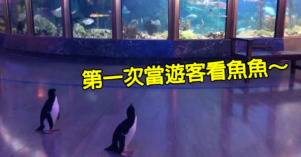 影/水族館因疫情關閉首度「讓企鵝當遊客」 新奇觀賞「魚同事」太可愛啦❤