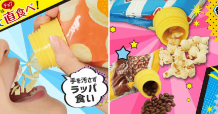 創世紀發明!網瘋傳「零食一口倒神器」只要簡單3步驟就不沾手