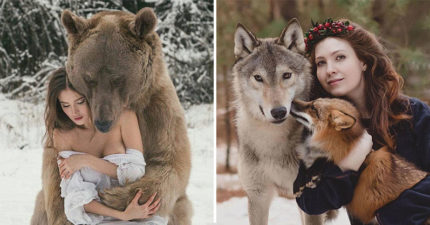 攝影師拍出「人和動物」的超親密合照 300公斤棕熊「從背後環抱」震撼萬人!