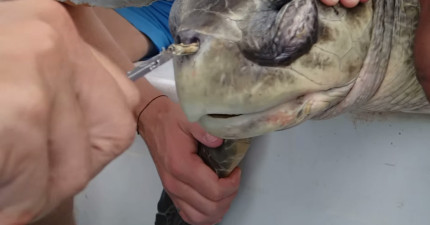 他们发现海龟鼻中卡了超长异物,用箝子拔出的痛楚画面会让你再也不敢乱丢垃圾!