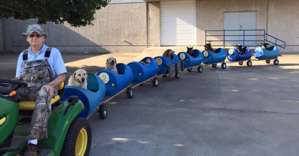 沒有人要這些流浪狗,但這名80歲老先生打造出這輛「狗狗列車」帶他們踏上最可愛的冒險旅程!