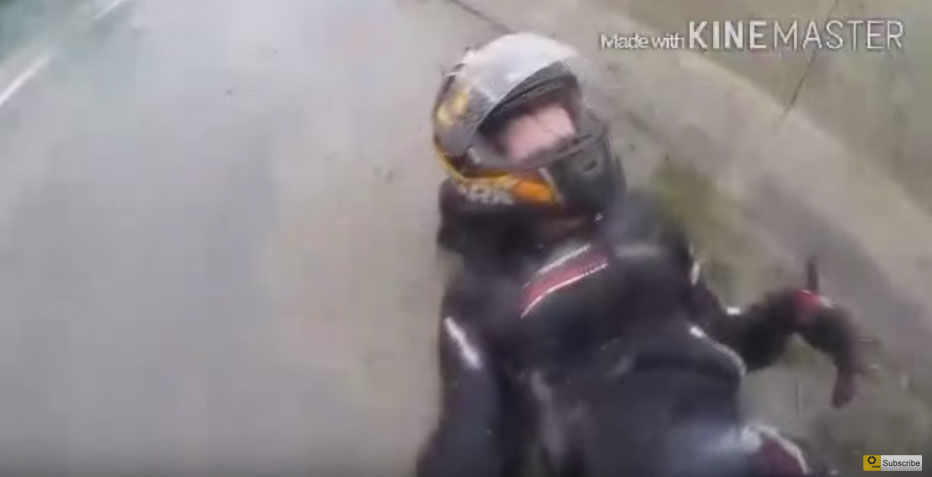 這名機車騎士和女友打滑看似要粉身碎骨,男友拼了命確保女友不受傷的驚險影片讓我看得太感動了!