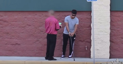 他假裝是視障人士跟陌生的有錢人或窮人說:「我媽給我這張彩卷說贏了大錢,你可以幫我確認一下嗎?」