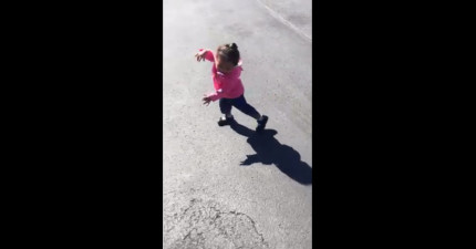 這個第一次發現到自己影子的小女生被嚇翻的模樣實在太可愛了!