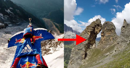 這個男子穿著飛鼠裝用超快速度飛進這個只有2公尺寬的山洞,一不小心就會直接撞爆!
