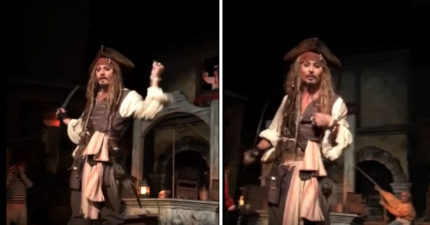 去迪士尼樂園玩的遊客坐船到一半發現「傑克史派羅船長怪怪的」,走近看「是真的強尼戴普」!(影片)