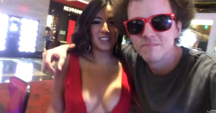 這個男生在路上找一大堆女生拍”胸部”自拍照。
