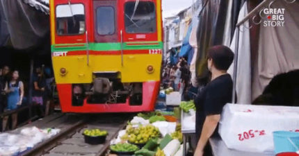 這個有名的泰國菜市場就設立在火車鐵軌上,每次火車經過都是「絕命終結站」畫面!