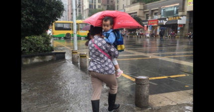 外婆沒注意雨傘把2歲寶寶排除在外說:「你怎搞不講啊」,但寶寶還是萌萌的…