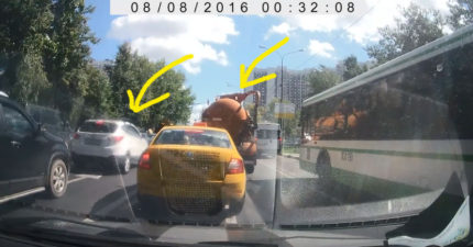 男子開到一半行車記錄器拍到前面「便便車大爆炸」,旁邊那輛白色的應該要換一台新的了吧..
