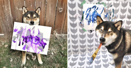 最會賺黑柴!咬畫筆「隨便兩撇」 主人直接進帳15萬…買家:狗界畢卡索啊~