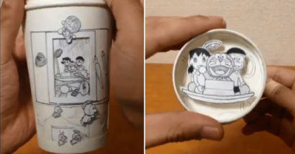 日神人一個紙杯重現《多啦A夢》場面 「旋轉時光機」真的動了起來!