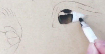 鉛筆作畫看似沒什麼特別 可是上色幾秒後:「真人」出現了!