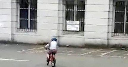 兒子專心練騎腳踏車 媽媽按快門意外拍到「祂」崩潰
