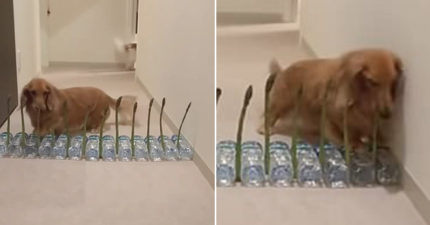 影/主人建「蘆筍圍牆」看狗狗反應 臘腸仔細偵察敵情:不會咬我吧QQ