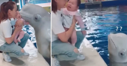 小白鯨熱情獻吻!寶寶卻「崩潰大哭」讓小白鯨心碎:不喜歡嗎?QQ