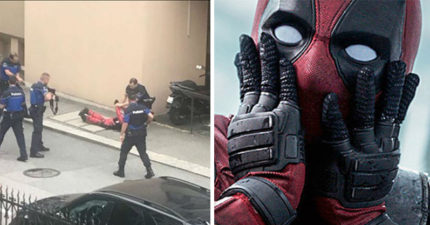 紅衣蒙面男走在街頭 被8名員警壓制在地!仔細一看…誤會大了XD
