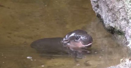 河馬寶寶游泳初體驗!「拼命狗爬式」加抬頭換氣萌萌der