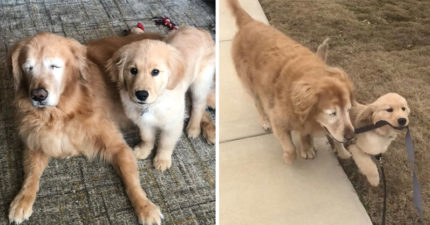 老狗狗「失去光明」從此再也沒辦法笑 直到有天「牠的導盲犬」出現暖翻所有人!