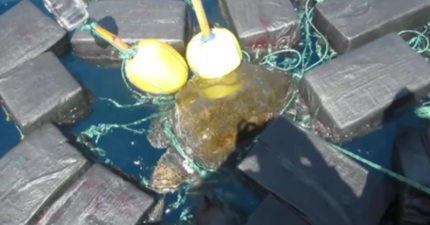海龜身上綁15.7億元差點要牠命!粗繩纏全身「817kg古柯鹼」磨到四肢發炎血跡斑斑…(影片)